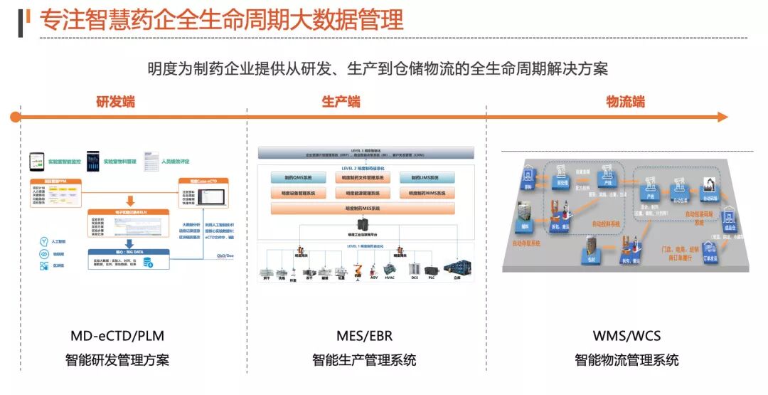 明度智慧是一家致力制药领域智能制造的国家高新技术企业,公司以智能物流系统和数字化工厂业务为基础、软件和控制技术为核心、工业物联网平台为载体,为制药企业提供从研发、生产到仓储物流的全生命周期解决方案。